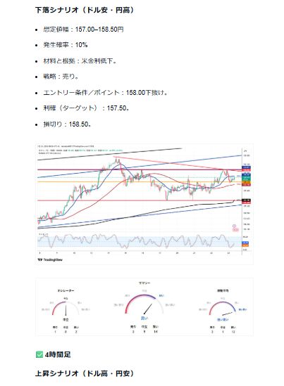 また、私が毎日利益を積み重ねている、ドル/円の15分足、1時間足、4時間足のチャート分析で、エントリーポイントと利確ポイントも公開します。