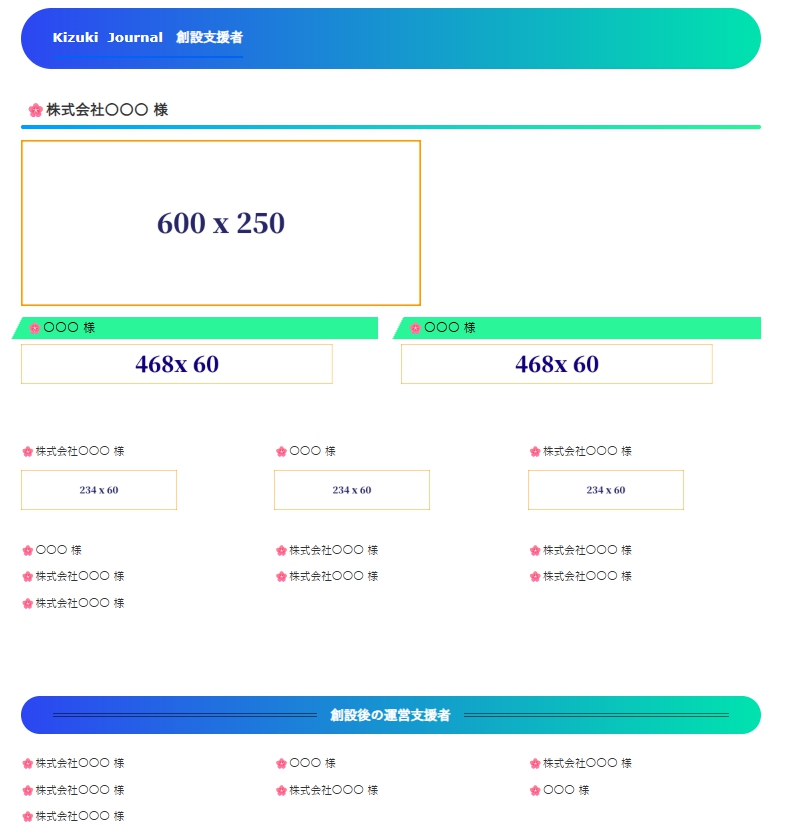 創設支援者ページにバナー(600 x 250)を掲載いたします。